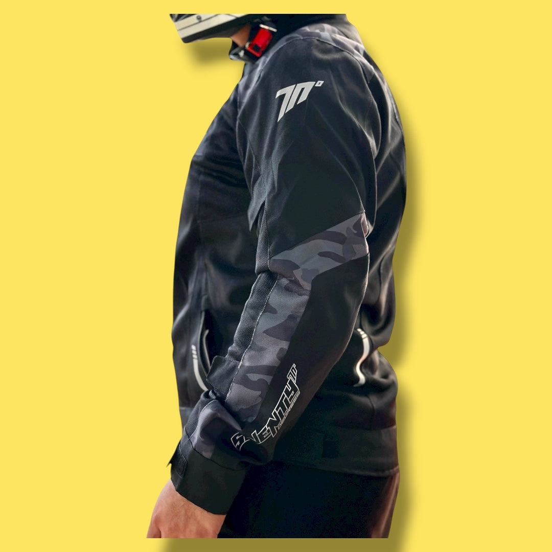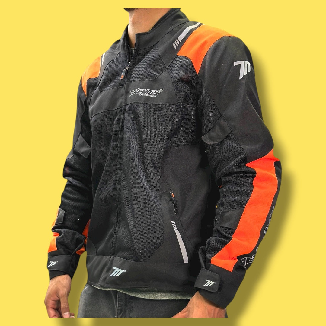 - Chamarra con protecciones certificadas en hombros, codos y espalda.